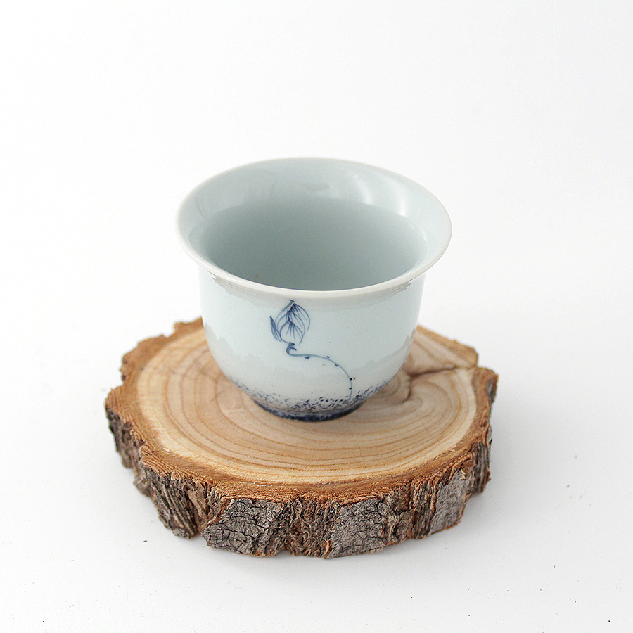 Тонкая керамическая чашка с нежной голубой глазурью и ручной росписью