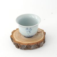 Тонкая керамическая чашка с нежной голубой глазурью и ручной росписью