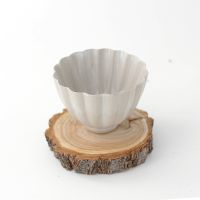 Крупная керамическая чашка изящной цветочной формы. Тонкая керамика, покрытая необычной тонкой глазурью с текстурной, матовой поверхностью, напоминающий нешлифованный металл.
