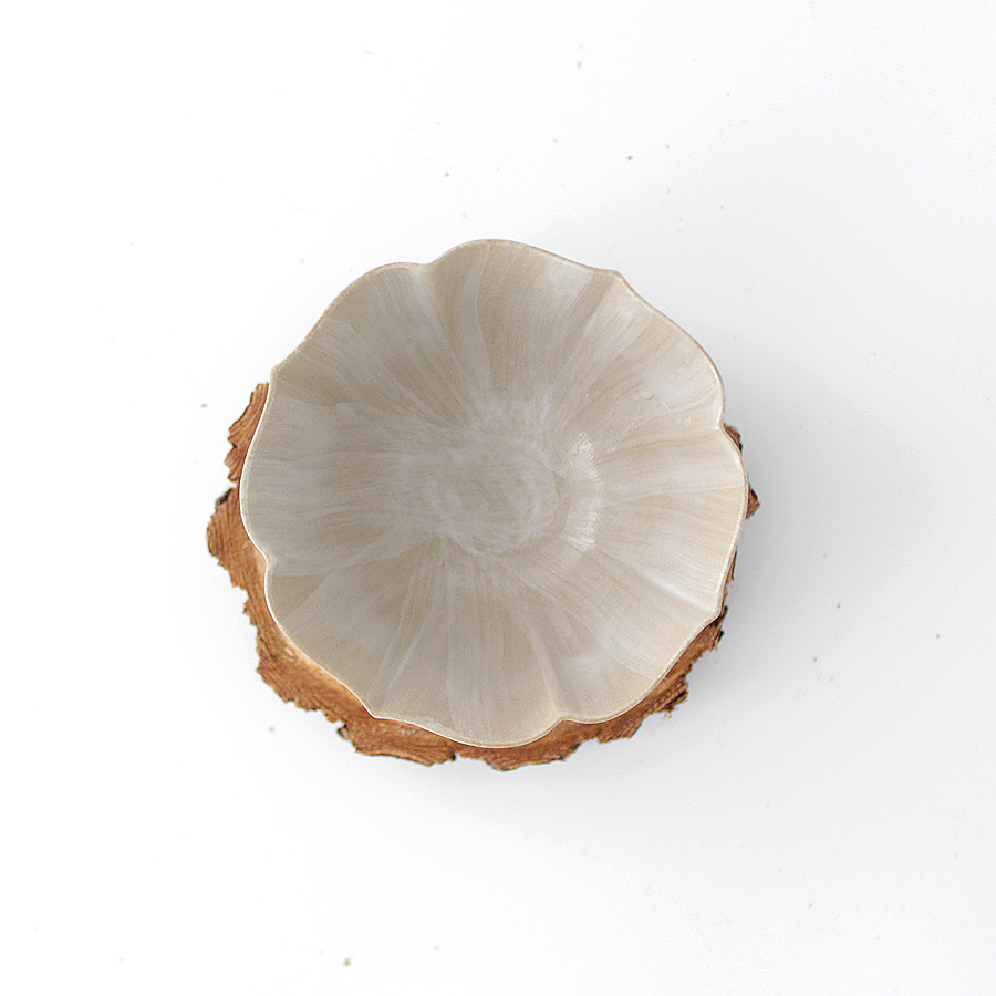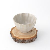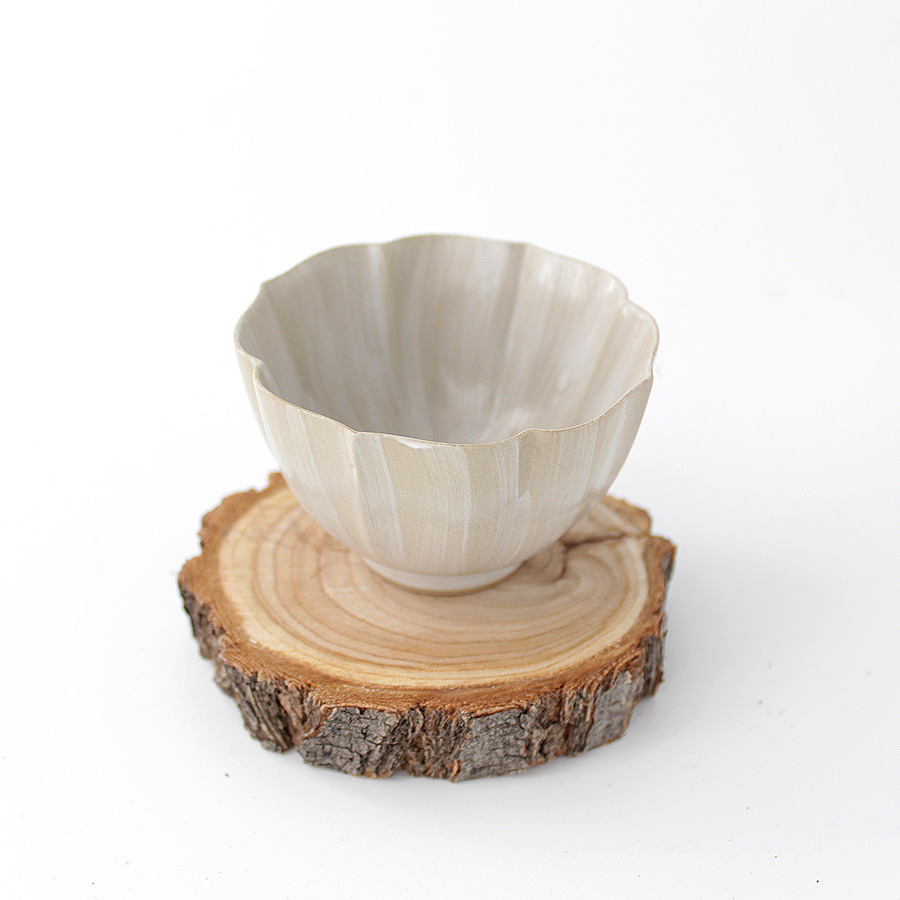 Крупная керамическая чашка изящной цветочной формы. Тонкая керамика, покрытая необычной тонкой глазурью с текстурной, матовой поверхностью, напоминающий нешлифованный металл.