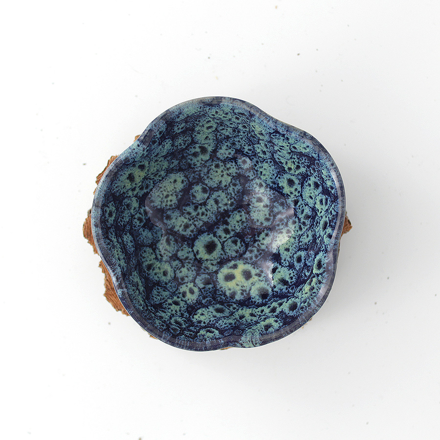 Среднеразмерная чашка с толстыми стенками и необычной глазурью. Приятно увесистая и гипнотическая.