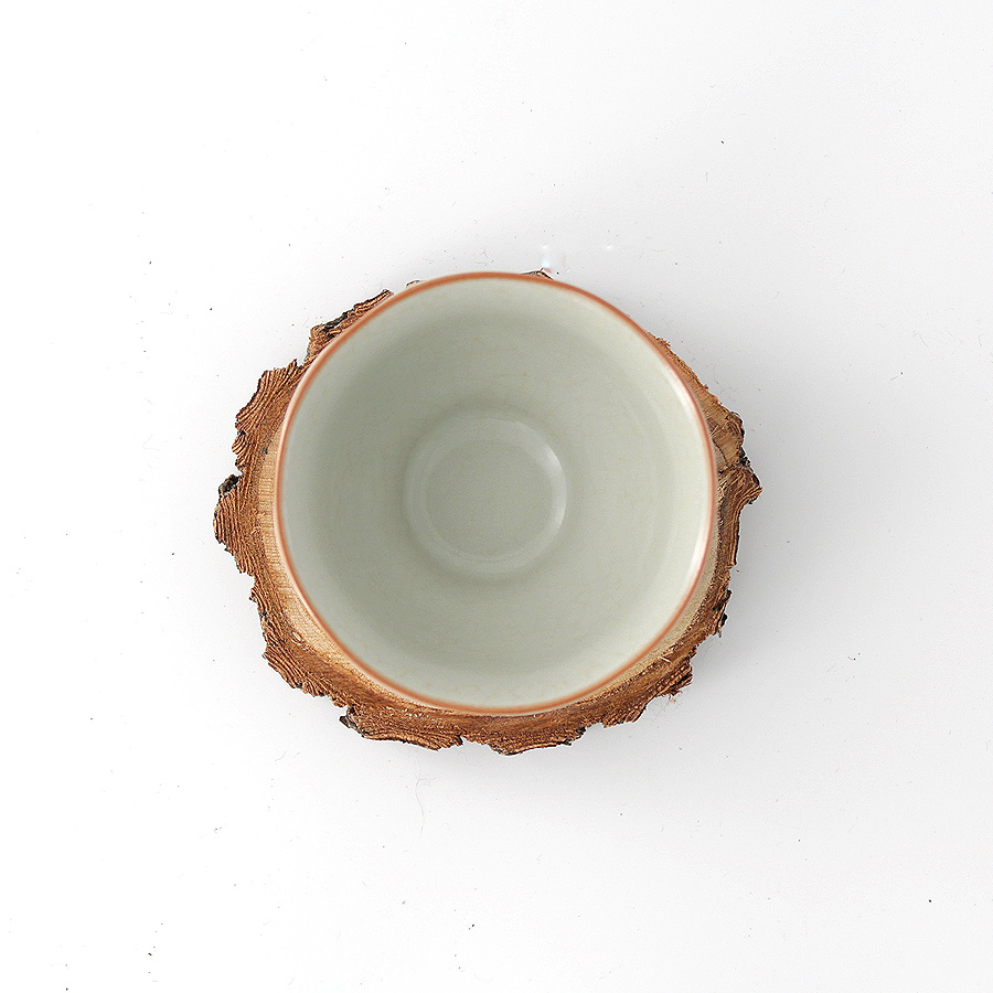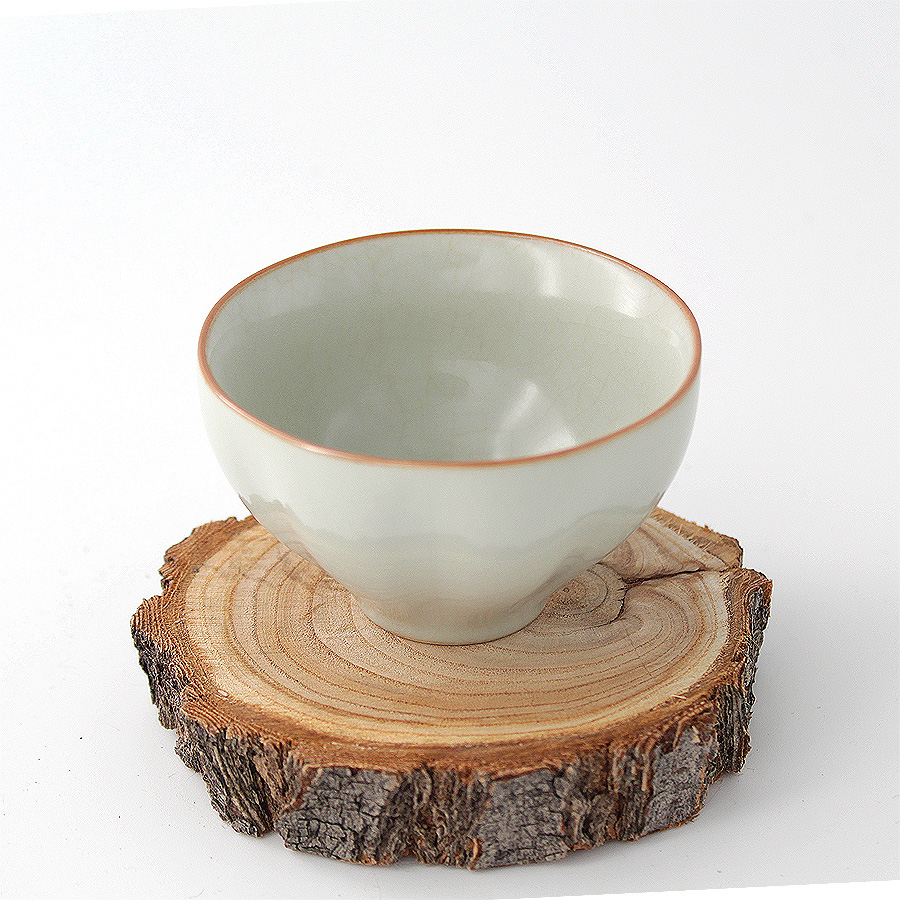 Небольшая толстостенная чашка в форме цветка, с глазурью Жу Яо нежного голубого цвета. Покрыта кракелюром - сетью тонких трещинок, которые со временем заполнятся чаем и потемнееют.
