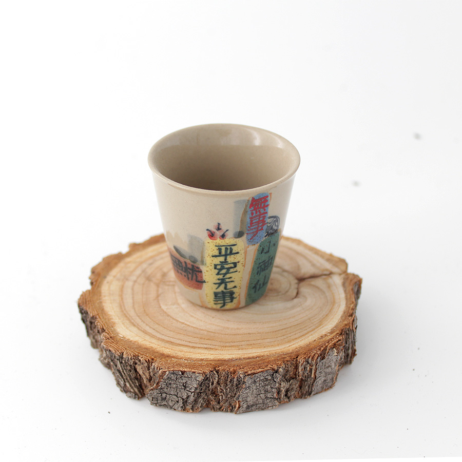 Небольшая чашка-стаканчик с приятной серой глазурью и необычной росписью. Иероглифы на росписи нанесены на текстурной поверхности, тактильно напоминающей кирпич. Рисунок на каждой чашке индивидуален и отличается от других.