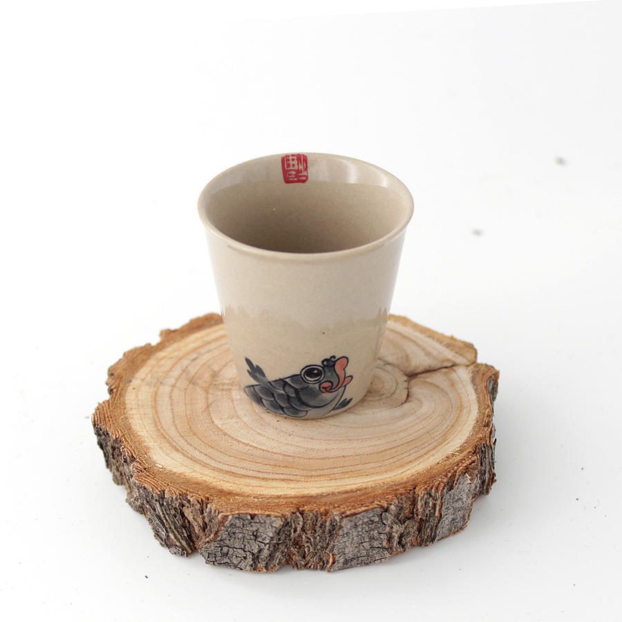 Небольшая чашка-стаканчик с приятной серо-бежевой глазурью и ручной росписью.