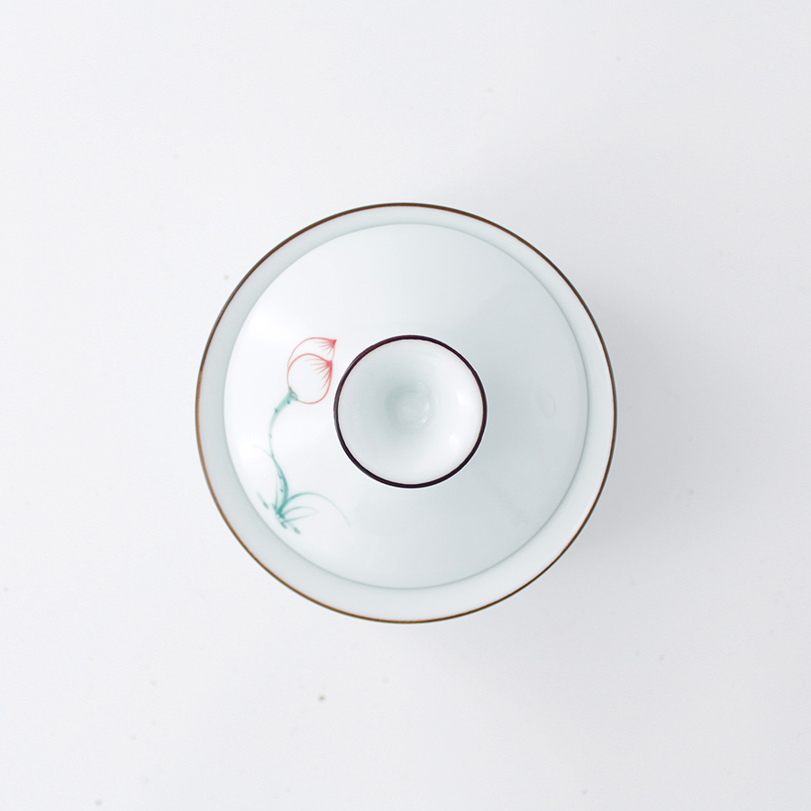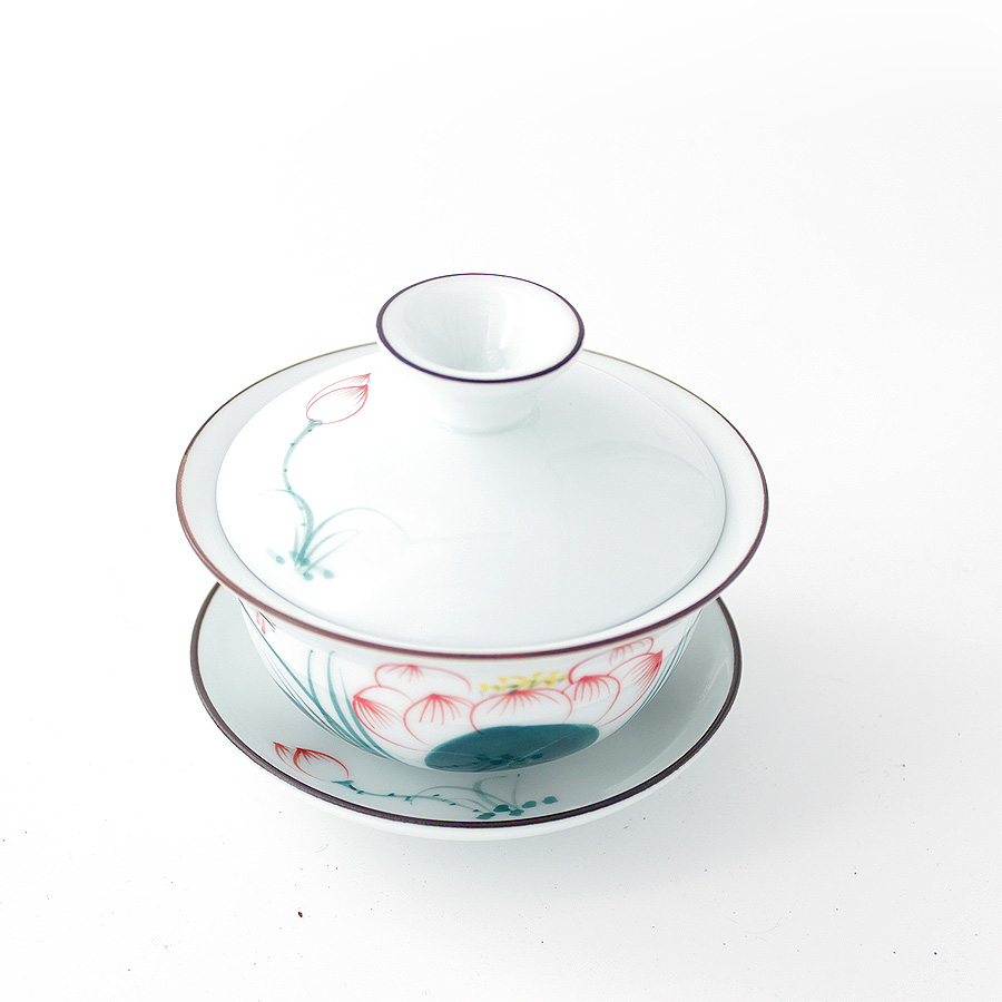 Бюджетная базовая фарфоровая гайвань с ручной росписью. Фарфор тонкий, форма удобная.
